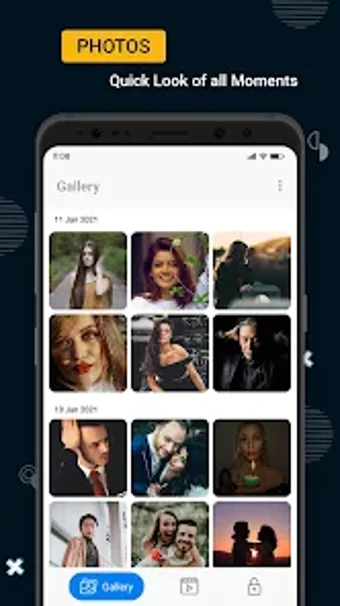 이 앱은 당신의 핸드폰에 있는 모든 사진과 비디오를 쉽게 볼 수 있게 해줍니다. 원한다면 편집하거나 삭제할 수 있는 능력도 제공합니다. 또한 새로운 사진과 비디오를 추가할 수 있습니다.